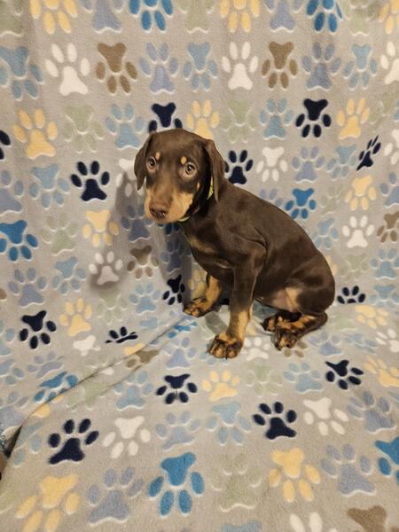 message sonyac33 about this ad She is a beautiful red and tan girl. Ears are cropped. Tail and dew claws are docked. Healthy, playful, very smart. Born to a litter of 10. Beautiful shiny coat. Born 11/2/2024. AKC registered. Up to date on shots and deworming. Mom is fawn, dad is black. Serious inquiries only. Text or call Sonya at 313-304-4535. |