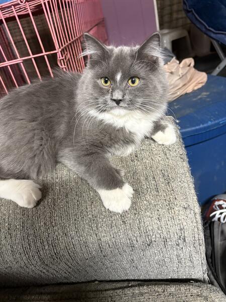 Rehoming this tica registered blue solid mitted with a blaze or open to trades for a puppy.