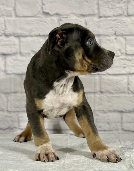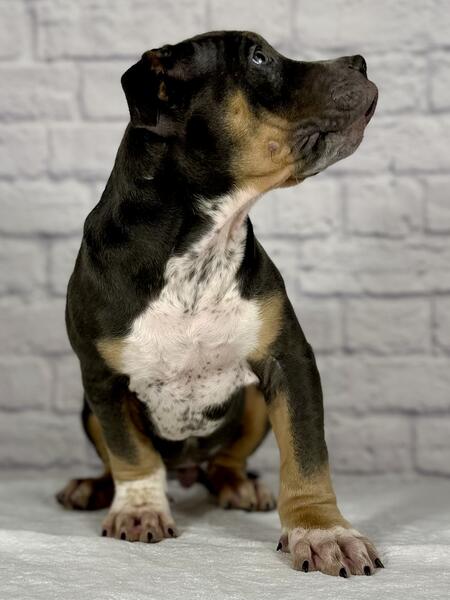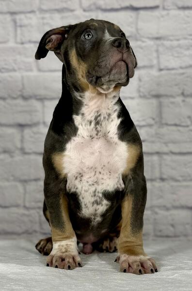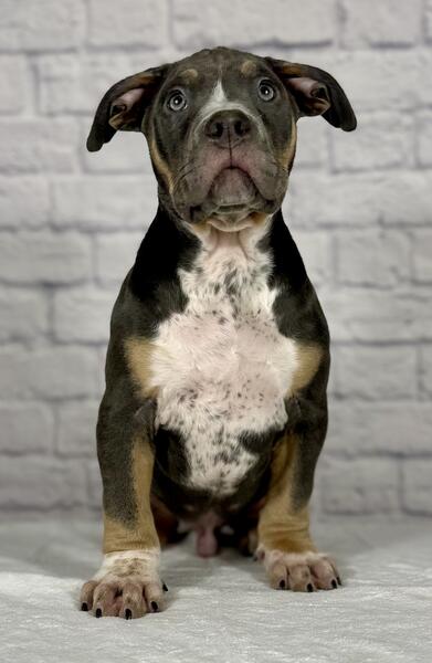 message grossobullies about this ad Blue Tri XL American Bully puppy, 11 week old male ready to find his forever home. The sire is Cal Kolas Loki & the dam is Bossys Luna. Luna is about 95 pounds & Loki is about 105 pounds. All of our dogs are ABKC registered. Both parents are from champion bloodlines and carry no flaws at all. We are Grosso Bullies located in Berwyn IL (Chicago area Text (708)363-8379 www.grossobullies.com grossobullieschicago (Instagram) |