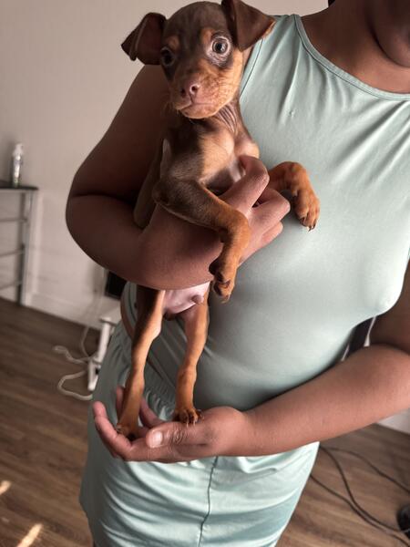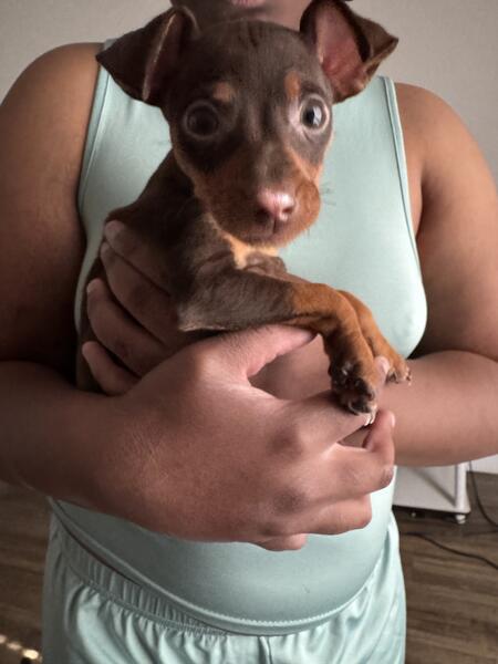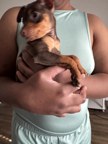 message nialuv about this ad Camero had 4 puppies born on June 7, 2025. I have 1 Male and female left, chocolate and tan. Tail docked, 1st shot, fecal exam and litter box trained. Ready August 1, 2025 I socialize and exercise them. Professional licensed breeder 2 years. Call Nia (786)966-1588 Located in Homestead Fl please contact me I really wanna find them a great home fee can be negotiated but please contact me for more information both puppies have been fully vaccinated & very friendly & social Their color are a Frost Brown & Tan |