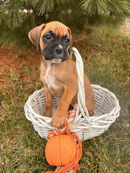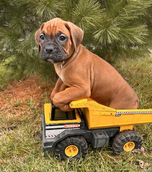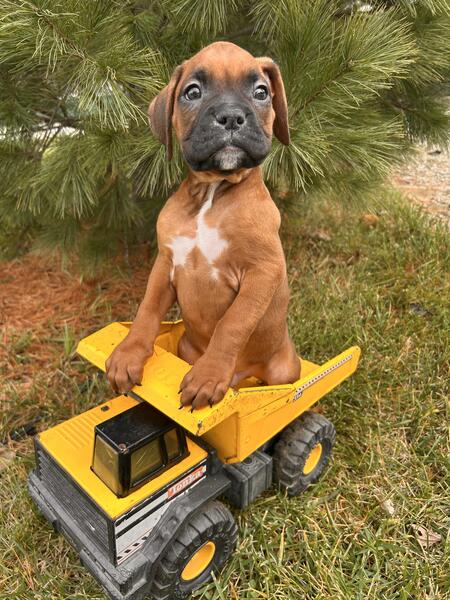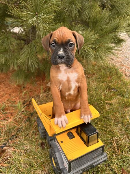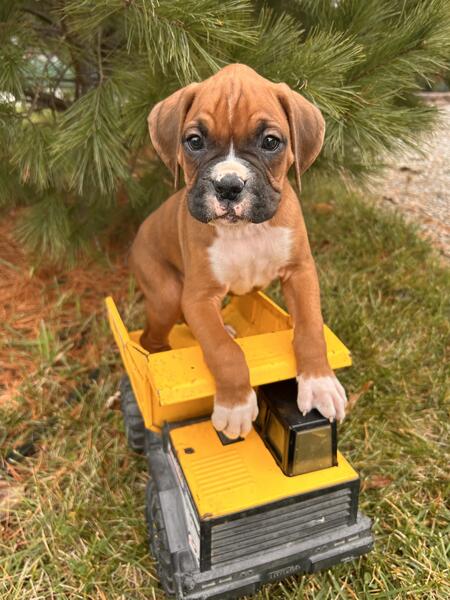 message missrieg about this ad This adorable litter of Boxers was born on September 30 and will be ready to go November 25. They are AKC registered and have been microchipped and have had their dew claws removed and their tails docked. Parents both weigh around 65-70 pounds. These puppies will be vet checked and given their first round of puppy vaccinations and dewormings. They will also come with a one year genetic health guarantee. They are a very sweet natured and playful litter. They love attention and enjoying exploring their surroundings! Make one of these sweet fur babies yours today. Please text or call for more info. Asking $1200 for the males(picture in the yellow truck) and $1500 for the females(all other photos) 574-536-8229 |