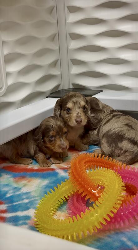 message kkayrouz about this ad I have a litter of 5 longhair Mini Dachshunds! Located in Ohio. Akc registered and parents are OFA & PRA clear. I have 3 left available. Mom is 9lbs and Dad is 10lbs. Please call or text me at 513-477-0125 for more info |