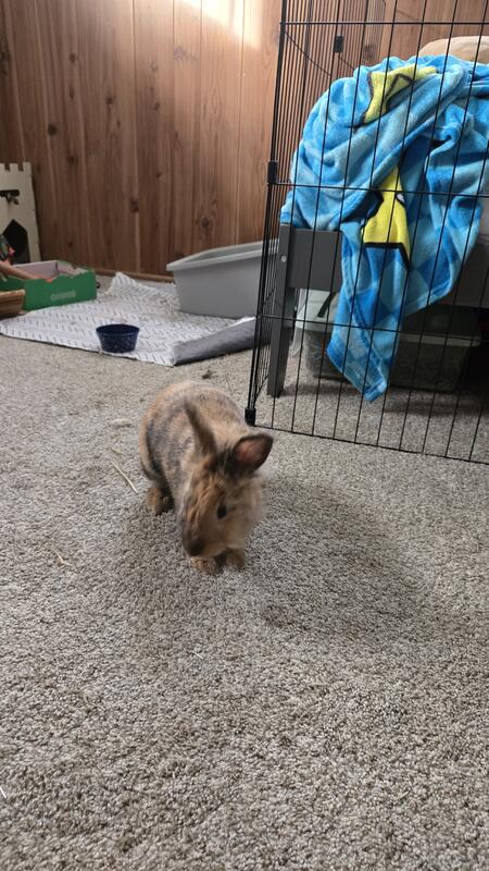Female bunny. About 9 months old. Comes with litter box, hay feeder, starter hay & pellets! Her name is Tigger. As a pet only.