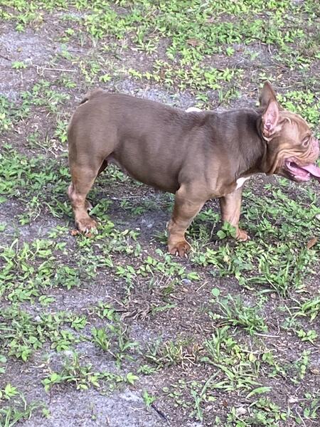I have a chocolate tri exotic bully shes nano asking price 800 usb papers in hand