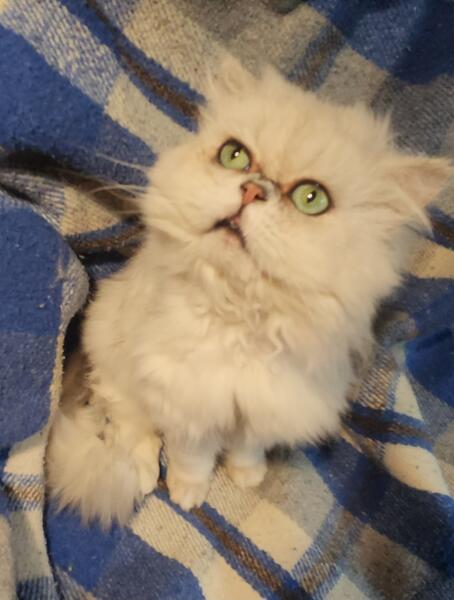 message cuddleee about this ad White chinchilla Persian male cat Almost 4 years old Very affectionate loving and vocal. Would be best as the only cat |