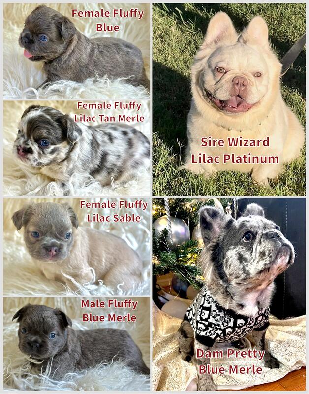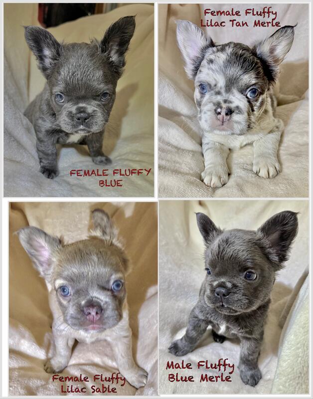 message brymhar about this ad 3 female fluffy french bulldog puppies left, sire and dam in pics; born 7/14/2025; DNA tested; 1 female Fluffy Blue; 1 Female Fluffy Lilac Sable; 1 Female Fluffy Lilac Merle with Tan points, utd with their shots, will listen to offerslets make a deal! |