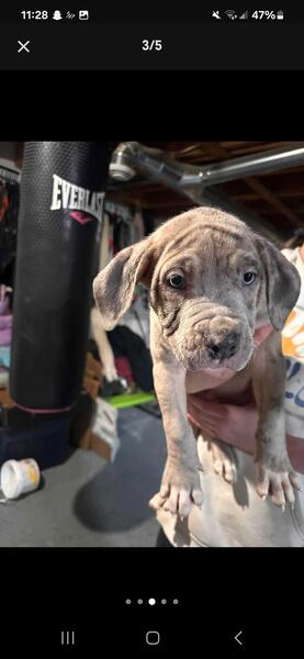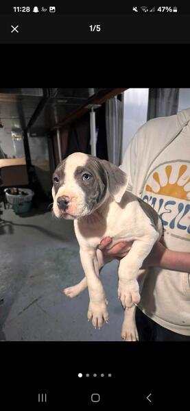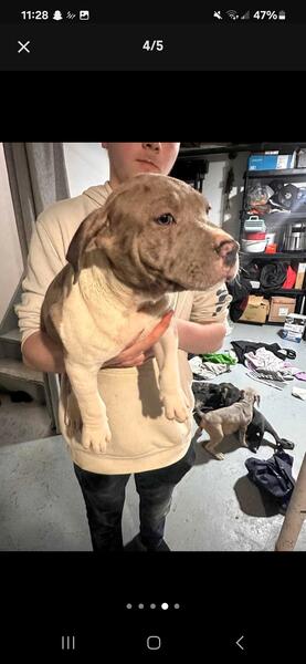message bshgw2767 about this ad 5 purebred xl American bully puppies 4 males and 1 females mom is registered but unfortunately the father isnt but there both purebred and loyal dogs dad is blue and white the mom is a white blue merle Merle male $2000 Merle male $2000 Blue and white male $1500 White little blue merle spots male $1500 Blue and white female $1500 Call or text 1-705-923-1842 for more info Ready to go March 7th at 8 weeks old Hand Raised with Love: Our puppies are hand-raised in a loving home environment, surrounded by constant care and affection. Each pup gets individual attention to ensure they grow up confident, well-socialized, and ready to bond with their new family. Wonderful Temperaments:American bullies are known for their friendly, easy-going nature and our puppies are no exception. Raised in a nurturing environment, theyll grow into gentle, happy, and playful dogs that will fit in perfectly with families, singles, and everyone in between. Ready for Your Home: By the time theyre ready to join you, our puppies will have been exposed to various sounds, sights, and experiences, making them well-adjusted and adaptable to new environments. We prioritize early socialization, so your puppy will have a head start on becoming the ideal family companion. Health & Wellness: We are committed to the health and well-being of every pup. Our American bullies will be up-to-date on vaccinations, deworming, and vet checkups before they go home with you, ensuring theyre happy, healthy, and ready for a long life of love and adventure. The Perfect Family Dog: Whether youre looking for a running buddy, a cuddly companion, or a friend for your kids,American bullies are one of the best family breeds around. Their gentle, patient, and affectionate nature makes them the perfect addition to any household. Reserve Your Puppy Today! These adorable pups will go quickly, so dont miss out on the opportunity to bring one of these sweet, hand-raised American bullies into your home. Contact us today to reserve your spot and bring home a new best friend! message bshgw2767 about this ad |