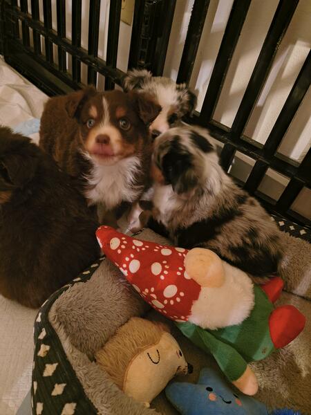 message sarahotte34 about this ad 4 toy Aussies. 1 blue merle female and 1 blue merle male. 2 male red tris prices varies. Female 850 with registration form. Male 800 with registration form. The red tris are 700 with registration forms. They are 5 weeks old. Will come with 1st set of shots. |