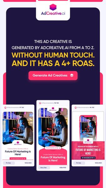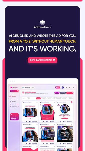 message joelrodrigues about this ad Marketing agencies need a metric TON of creatives. Win back your freedom with AdCreative.ai the supercharged ai that cranks out mouth-watering creatives fast. No graphic designer is required. Plus, our friends at Google will give you a $500 ad credit for signing up! Try risk-free for 7 days |