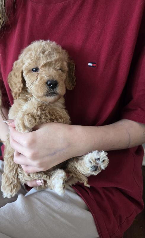 message sophie12 about this ad Niko will be ready to leave after January 11th. He will come with a wellness exam, shots and deworming. Mother is F1 Goldendoodle and father is AKC miniature Poodle. |