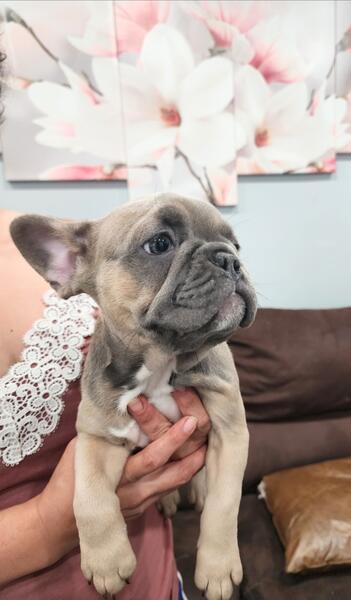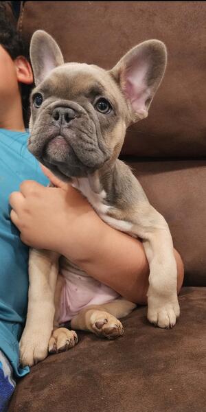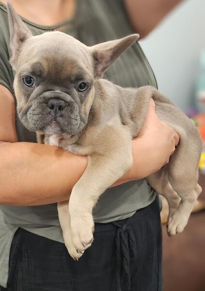 message jerzeyfrenchies about this ad Meet Rosie This stunning lilac fawn French Bulldog female is a fluffy carrier (L/l4) with an incredible look and the personality to match. Sweet, alert, and full of charm shes playful yet gentle and loves human attention. DNA: L/l4, d/d, co/co, AY/a, B/b, EM/EM Fluffy carrier + cocoa, blue, and tan-pointed genes Vet checked, vaccinated & dewormed Turf grass potty trained Raised with kids and other dogs Located in NJ | Ground transport available Whether youre looking for a gorgeous companion or future breeder female, shes the full package. With the right stud, she can produce lilac fawn, isabella carriers, fluffy carriers, cocoa, and tan-pointed pups. Handled with love and care from day one no shortcuts. Message for rehoming info, videos, or to schedule a FaceTime meet. Serious inquiries only. Follow us on tik tok @Jerziefrenchies for more pics and videos of the pups |