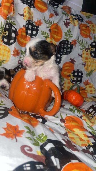 message queenpin about this ad Exotic parti yorkie boys. 1 month old! Pics of mom and dad are in the pics. Ready to go to their furever home first week in December They are looking for the perfect home today! They are so adorable, i nearly wanna keep them for myself. They come from a champion bloodline. Asking price:1500. I have pics of puppies as well as mom and dad. Mom and dad are 3lbs. Dad is the handsome fellow with the Burberry shirt on (dad Carries the recessive gene to produce parti pups as well as traditional) and mom is the beautiful young lady in the red . This is truly a steal for these tiny, exotic, rare genius, QUALITY fur babies! You will fall in love! text 3134522201 for serious inquiries only |