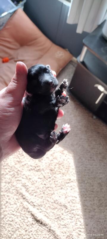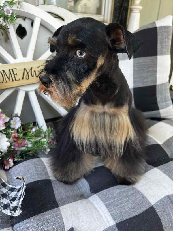 message schnauzergirl about this ad I only have one male left. Black with some white. Born 11-8-25 and will be ready the week of Christmas. AKC Registered. Mom is Wheaton weighing 10# and dad is liver tan with blue eyes weighing 10 If interested you can call or text between 8am-9pm daily. 2762660914. I'm pretty sure this little guy is going to have blue eyes. |