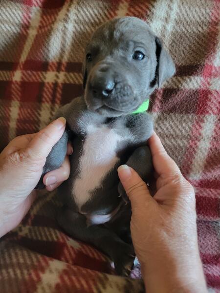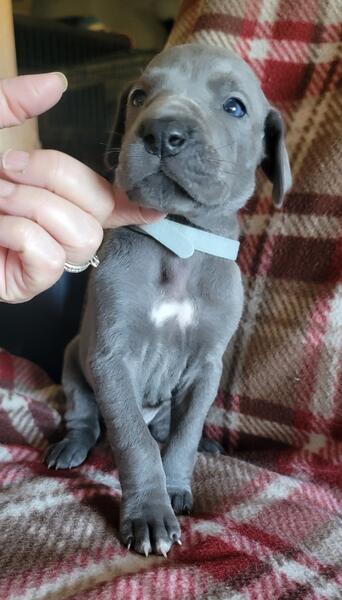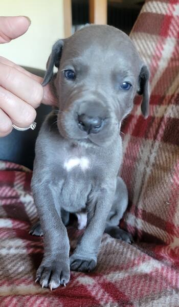 message gkdanes about this ad AKC Great Dane Puppies - 6 Blue Males birn August 9, 2024. Would love to be in their forever homes for Christmas. Come with puppy packs and 2 year health guarantee. Dew claws have been removed, wellness checks at all 3 vaccination appointments. Have all had their 1st rabies vaccination. There are 2 solid blue males with no white markings which will be sold at a higher than listed price. Please email with questions to gkdanes@gmail.com. Taking non-refundable deposits now of $500 to hold. Puppies are located just outside of Madison, WI. |