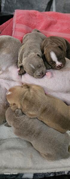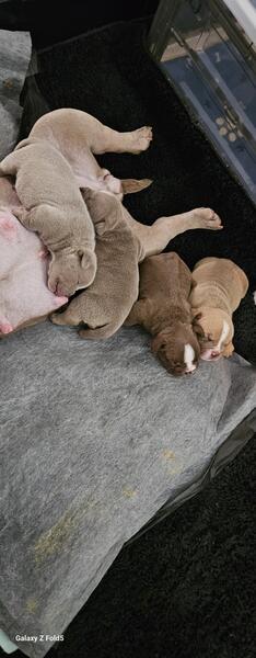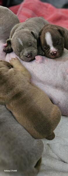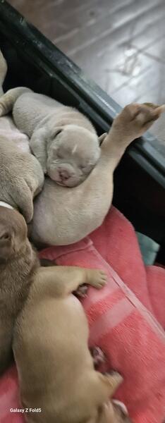 message cfkkennels330 about this ad Here are some uodated pictures of the pups the lilacs are the female there are two and the chocolate and tan are the males looking good and healthy chilling with mom. These are gonna be some amazing pups . |