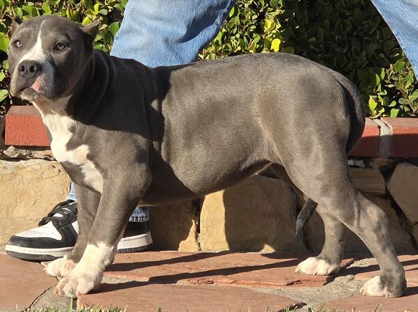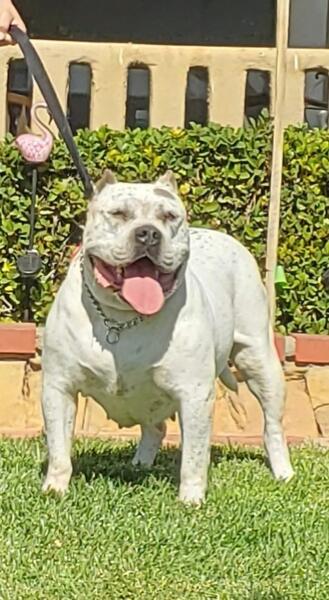 6 1/2 month, XL American Bully female for rehoming. Parents on post, message for more info. 915-929-7418 mom and dad on post