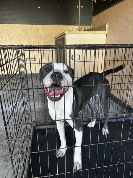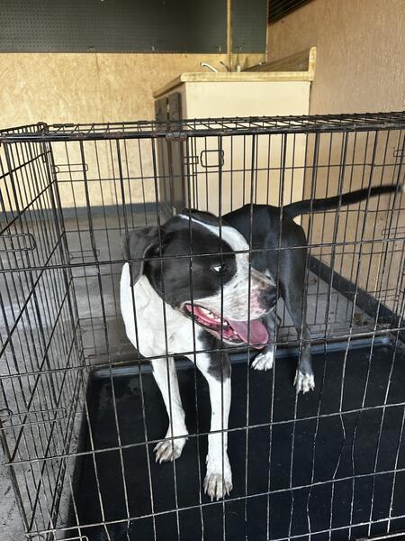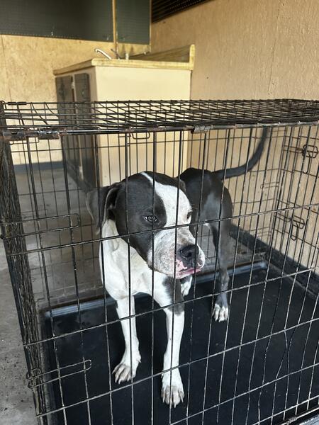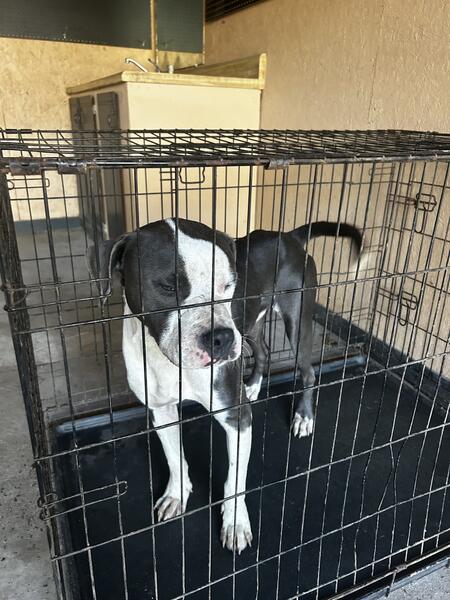 1yo pitbull no crate . Must have one for pickup. Not aggressive. Been around kids. Outside dog