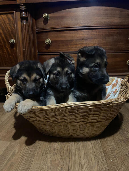 message llbrd6261 about this ad Male and female German shepard puppies are currently 9 weeks old and ready to be re-homed (with rehoming fee) today. All shots and treatments are up to date with veterinarian certification to be rehomed. Puppies are black and tan with varying patterns. Both parents are shown at the end of photo slideshow. Please feel free to call/text with any questions regarding the puppies. (631481-6023 |