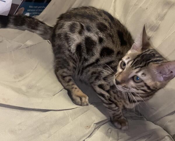 message bgbcats about this ad A real sweetie, an only kitten from a silver father and seal lynx point mama. Born July 15th, breeding quality. TICA registered, shots and wormed. $1000 for pet, $2500 with breeding rights. |