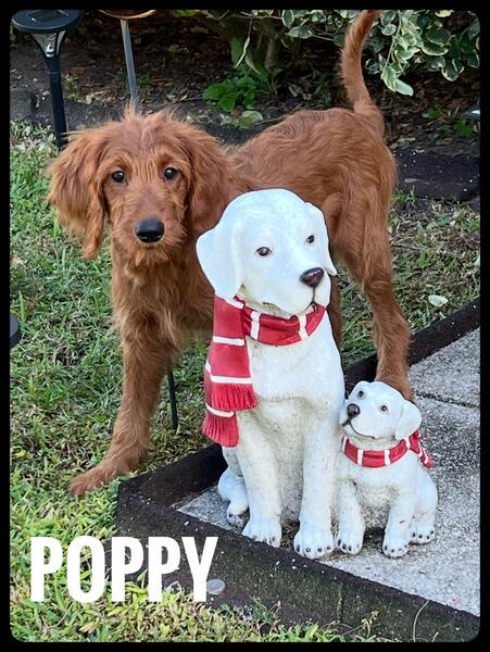 message gratefuldoodles about this ad Poppy is an F1 Goldendoodle female expected to be 30-40lb as an adult. She was born 7/13/25 and is ready to go home! Puppy comes with age appropriate vaccinations (including rabies health certificate from my Vet, microchip and a two year genetic health guarantee. She is doing wonderful with crate training and potty training. Link to youtube video: (Copy and paste into your browser) Will travel within 3 hours of Jacksonville, FL to deliver. Puppy nanny available to fly in cabin with your puppy if you live in another state. Fill out a puppy application and text Lori 904-537-3698 if interested in Facetime (live video chat) and/or coming to meet her. Gratefuldoodles.com/puppies |
