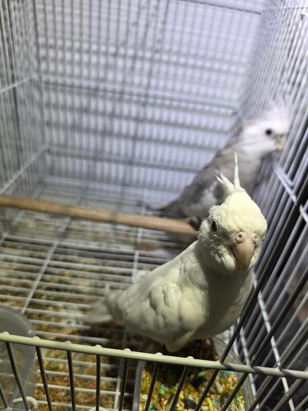 one very pretty pair of Cockatiel breeding pair for sale 1 year 6 month old info text or call me 973 337-0280 no low offer