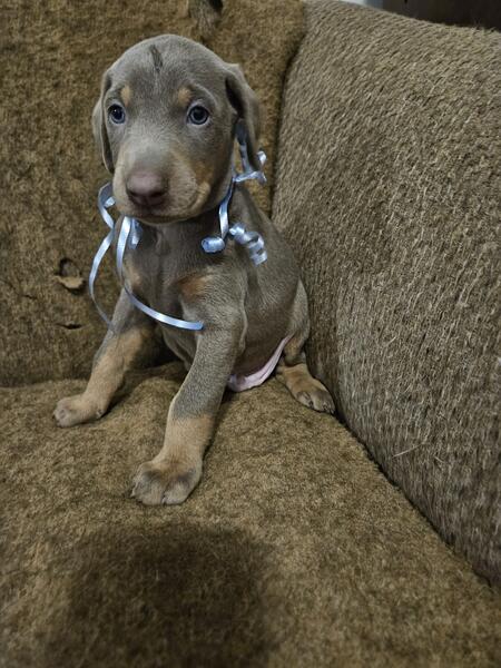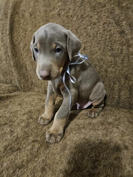 message dobermanpups2 about this ad AKC conditional registered puppies. Fawn, Blue & Rust, White. Tails docked, dew claws removed, will have age appropriate vaccination. Healthy family line for 20 years. Reserve yours now. Calls preferred 3o9-221-1223 |