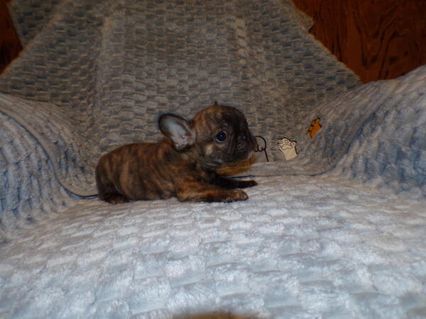 message aswan about this ad Rocky is a beautiful little French bulldog puppy who loves to play is looking for his new family. He is utd on shots and deworming. He is AKC registered and has many champions in his bloodline. I can text a picture of his dad's pedigree upon request. Call or text me for more info at 618-581-1362 |