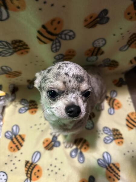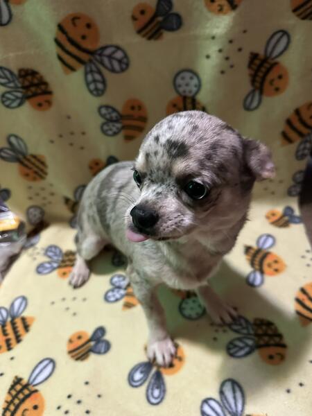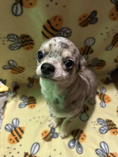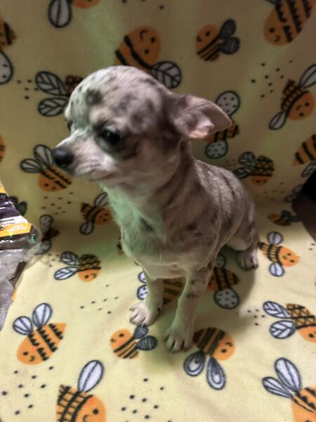 message bubbles76 about this ad Blue Merle Chihuahua puppy male born July 23, 2024. AKC registered. Pet only unless u want breeding right that will be more. |