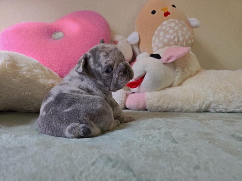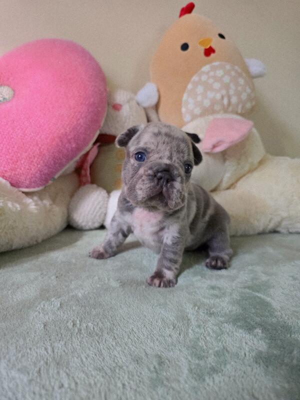 Litter of four french bulldog puppies. 1 male, 3 females. Born May 23, 2025. Clean bill of health and super sweet!