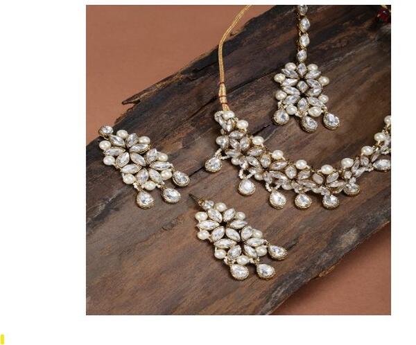 message rohinee about this ad Product Code: 10296265 Gold-Plated Jewellery Set Gold-toned & white necklace studded with artificial stones & pearls, secured with a drawstring closure A pair of matching earrings, secured with post and back Matching maang tikka, has a hook closure Maximum Necklace Length : 35 cm Earring Length : 6.5 cm Maangtikka Length : 12.5 cm httpsmyntr.it/9mZJmtb |