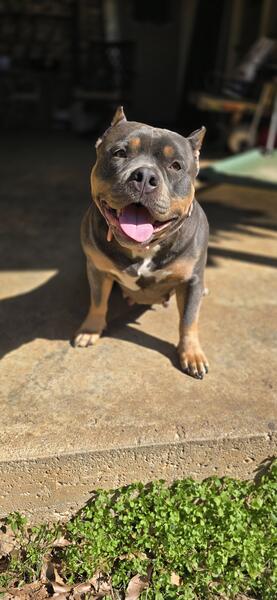 message koda72304 about this ad Luna is a 3 year old blue tri ABKC registered pocket American Bully. She is 65 lbs. She is not spayed but she will need to be as she has bad allergies and chronic yeast problems in her ears. Im looking for a home that can manage her issues as after some recent medical problems I can no longer afford to manage them myself. She has had one accidental litter of twelve puppies. She is a very sweet and playful dog. Shes fully house trained and does fine in a crate. She is fine with male dogs and cats. Shes never been around another female dog so Im not sure how she would be with them. I wouldnt recommend a home with small children as she is very playful and energetic and might jump on them or knock them down. Price is $300. Message me here or text Catherine at 334-306-3009 for more info or with any questions. |