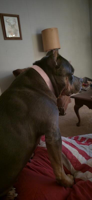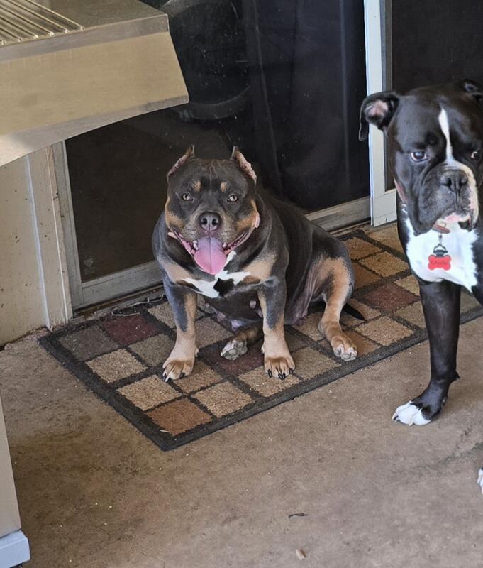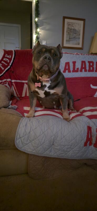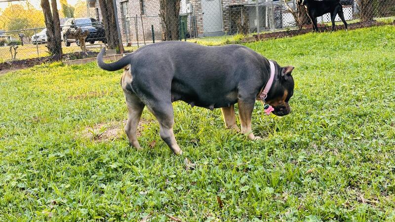 message koda72304 about this ad Luna is a 3 year old blue tri ABKC registered pocket American Bully. She is 65 lbs. She is not spayed. She has had one accidental litter of twelve puppies. She is a very sweet and playful dog. Shes fully house trained and does fine in a crate. She is fine with male dogs and cats. Shes never been around another female dog so Im not sure how she would be with them. I wouldnt recommend a home with small children as she is very playful and energetic and might jump on them or knock them down. Price is $500. Message me here or text Catherine at 334-306-3009 for more info or with any questions. |