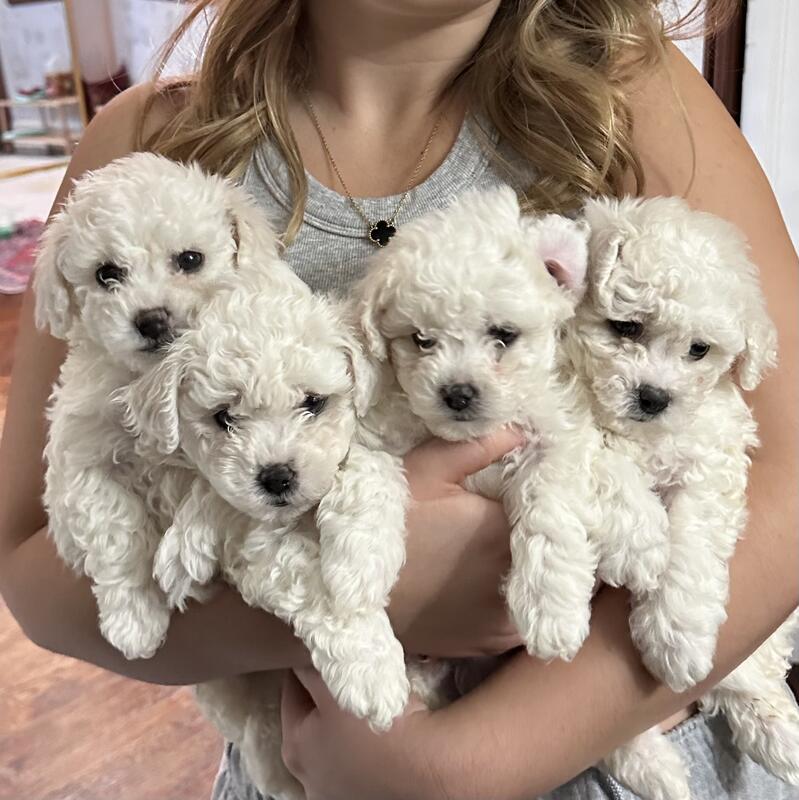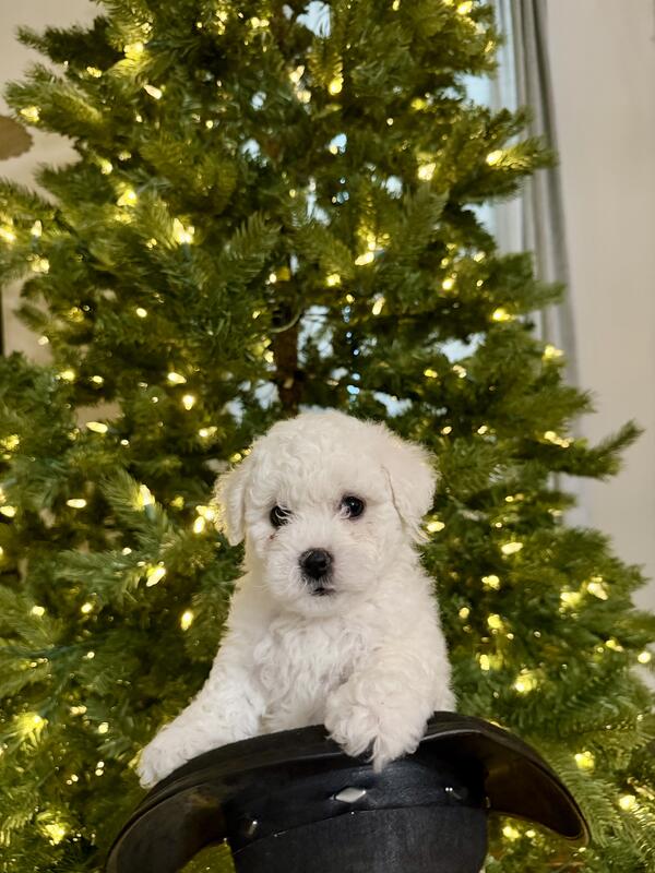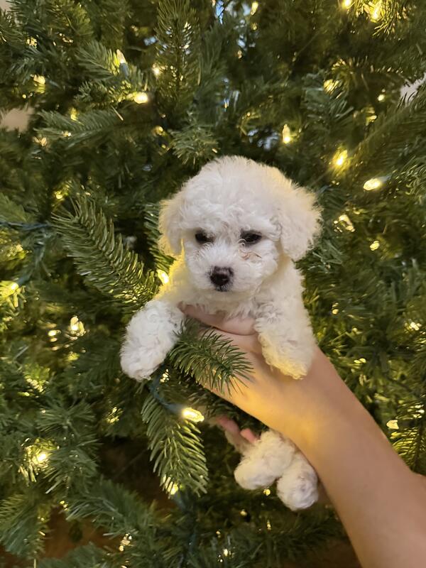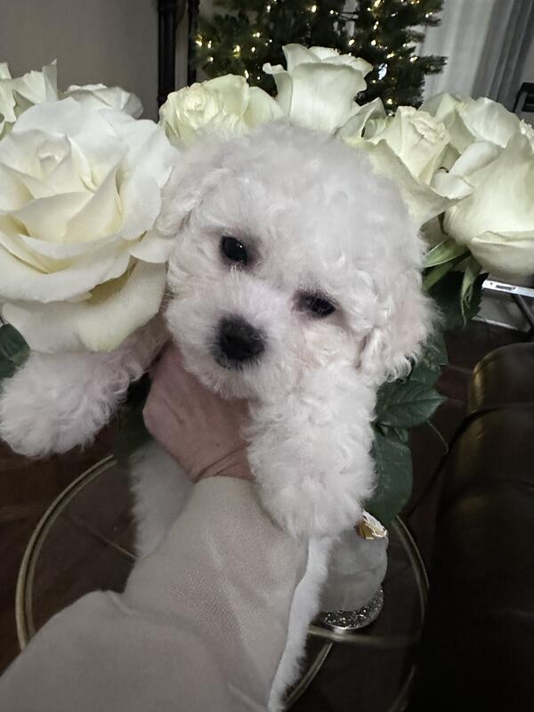 We have an adorable litter of male purebred Bichon Frise puppies available. Born Oct 2nd and ready for their forever families. Known for their cheerful disposition and hypoallergenic coats, these puppies make excellent family companions. Our puppies are raised in a loving home environment with plenty of socialization to ensure a smooth transition to your family. Up-to-date vaccinations and deworming. Excellent healthy bloodlines. Parents on premises and part of our family. Negotiable