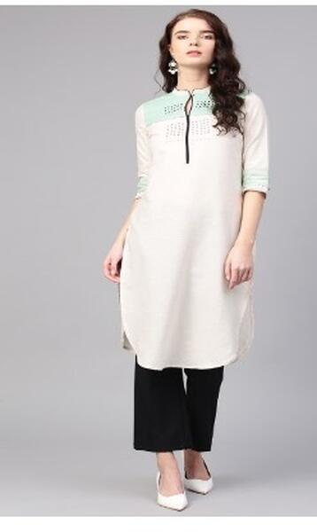message rohinee about this ad Product Code: 8429437 Off-White and turquoise blue yoke design straight kurta, has a keyhole neck, three-quarter sleeves, curved hem, side slits The model (height 5'8 is wearing a size S Show off your elegant style with a brand new kurta from W. For your next dinner party or family gathering, this off-white piece pairs well with dark leggings and chic flats. 88% cotton, 12% flax Hand-wash httpsmyntr.it/il3Nwb9 |