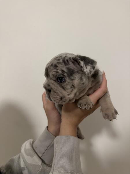 message shncl5144 about this ad big rope merle male Frenchie pup 5 weeks sire is shown in pictures dam is shown in picture full akc shots wormed dna health panel 1 year full health guarantee included with pup. |