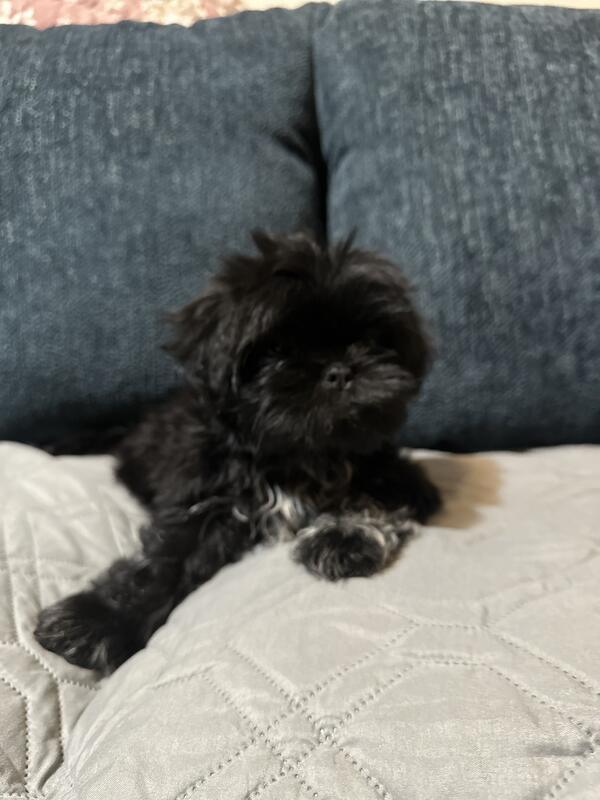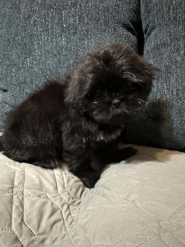 Two black male Shih Tzu puppies are available. Puppies come with first round of vaccines and dewormed.