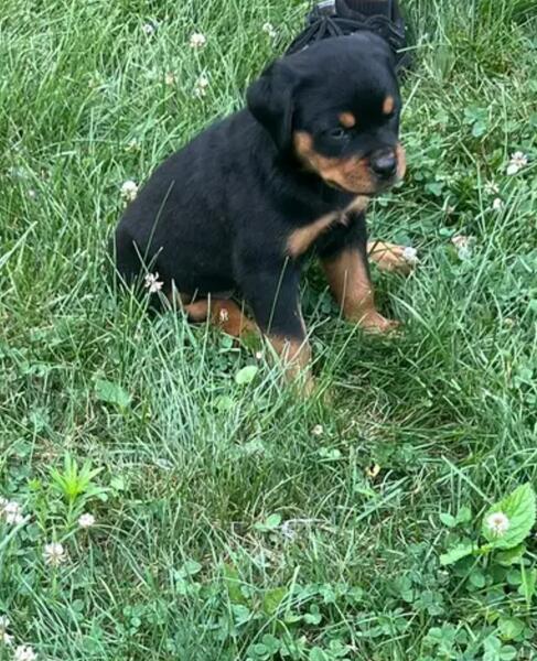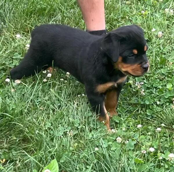 9 week old AKC registered female Rottweiler pup utd on shots and dewormer. Bristol IN