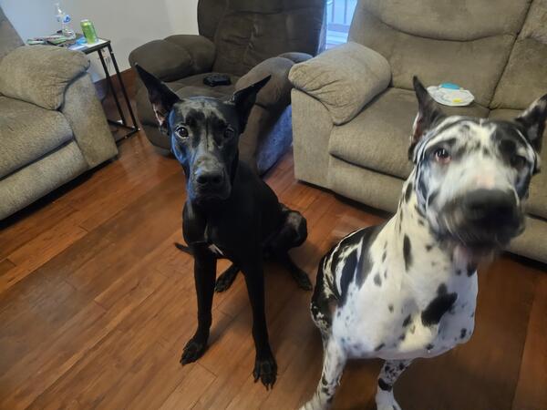 message pckttk1717 about this ad All black great dane male just turned a year old. Very friendly with adults and great with kids. If interested please text 765.421.9244. |