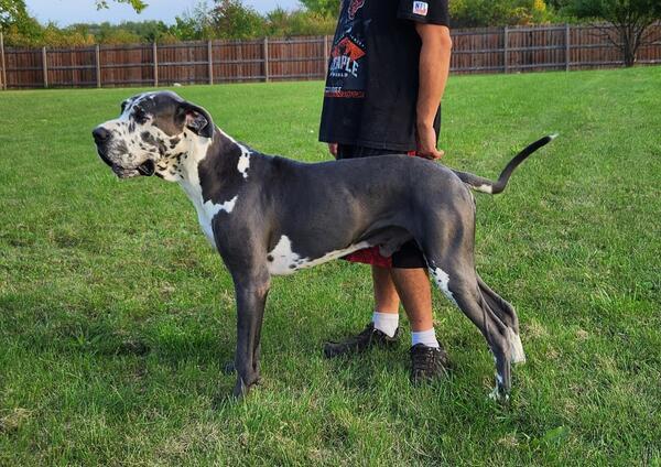 message houghsdanes about this ad AKC Great Dane Puppies expected 11/23/2023 Blue, Blue Merle, blue mantle and Blue Harlequin 1800.00 Price listed is pet price limited AKC. Pups pictured are from Novas last litter. (Creed is grandpa to this litter Blue) Louie Blue Harlequin is father. Lilac Mantle Nova is Mother. Dam (mom) is our sweet, loyal and calm girl Nova, she is 140 pounds, the sweetest girl you will met. Very laid backed and loyal. Not a mean bone in her body. Happy to play or be on the couch. Sire (dad) is our amazing boy Creed. He is 175 pounds. Both are excellent with our children and our other dogs. Puppies are raised in our home with kids and other dogs. Use to normal household activities. Pre-spoiled with lots of love. Puppies will be dewormed 4 times, first shots given by vet, vet checked 2 to 3 times. Dew Claws removed. Health Certificate from vet, Life time breeder support, 2 year health guarantee and return contract. Each puppy will come a puppy pack. (collar, leash, toy, blanket that smells like mom, puppy care guide and food) $300 deposit to hold puppy of your choice. The deposit is typically due at 1 to 2 weeks old when puppies are chosen by families. Puppies will leave at 8 weeks. For more info please contact 262-220-3614 via text or call or via e mail Willing to provide references as well. More videos and pics on Houghs Danes on Facebook. message houghsdanes about this ad |