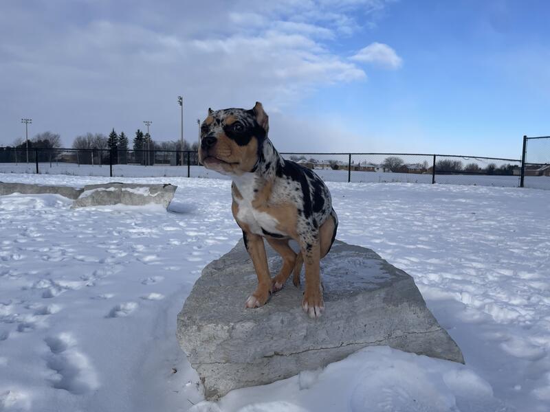 message prclss6324 about this ad Magma & Stormi ! Females. Fully vaccinated. Have been socialized with children and other dogs since birth. 6 months old, purebred American bully puppies. Basic training and pee pad trained. If interested contact Justin 647.996.0165. Serious inquiries only! Parents are Black Tri Merle (Mother) & Blue Tri (Father) pictured in ad. |