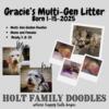 message jholt21893 about this ad Our beautiful litter was born 1/14/25. There multi-generation. We have 6 males and 2 females. They are standard size. Deposits are $200 theb remaining balance will be due at pickup. If youre interested reach out please thank you. Holt Family Doodles Check out our Facebook: |