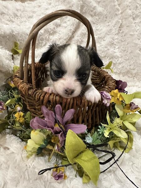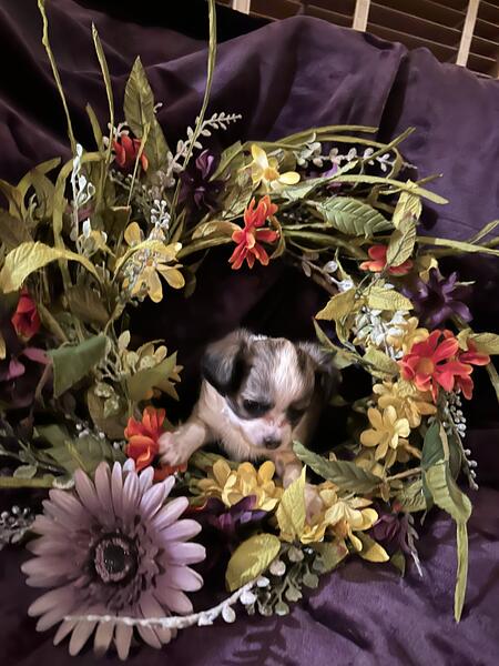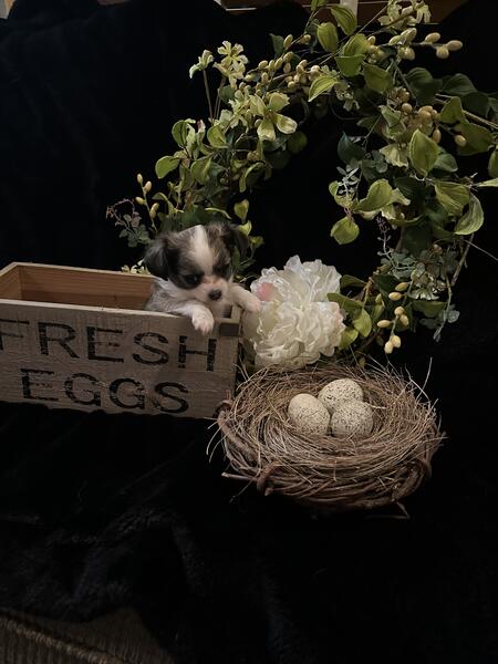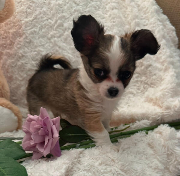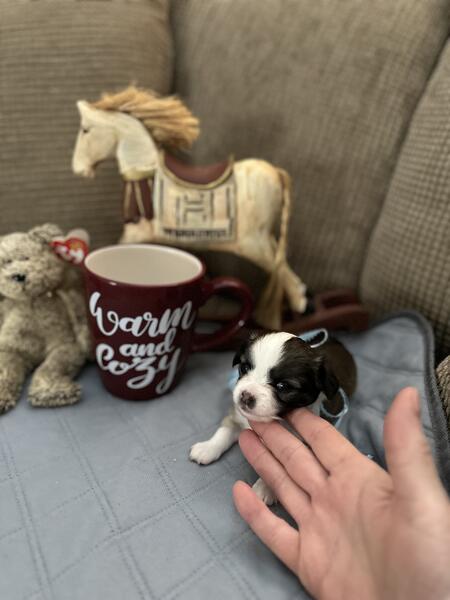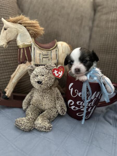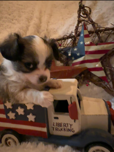message btdrk6400 about this ad Very Small - Purebread long hair Male Chihuahua. He is ready to go to his new home. Puppy can be registered. Meet Oreo Cookie a make long-hair, deer head, beautiful chihuahua who has Merle heritage. His beautiful, lush, long hair colors consist of sable, white and black. He has a white stripe along the top of his head down to his muzzle and black on each side of his head that reminds me of an Oreo cookie. (Oreo is just as sweet as a cookie too ) He has beautiful ice blue eyes which is usually characteristic to a Merle. Mom has one green eye and one ice blue eye. However, he is a little too young to tell if they will be staying ice blue. Right now he is charting out to be about 3 pounds or smaller as an adult. So he will be a VERY small dog. Mom and dad are both very small dogs and weigh around 3 pounds. My puppies have excellent dispositions. They are raised in a family home environment and acclimated with adults, children and other dogs. Little Oreo has a fantastic personality! He is inquisitive, a bit shy, laidback, and so very lovable. He loves to be held and cuddled. Just like his sister and brother he also loves belly tickles and will roll over so that you can tickle his belly. When you cuddle with him he tucks his little head under your chin and loves to give kisses on your chin. He is sure to melt your heart. He will come with his first and second set of shots, dewclaws removed, and dewormed for his age. He will come with his puppy book that was started at birth with pictures and all his records that will be up-to-date at the time of purchase. For more information please contact me at my email bonnieslonghairchihuahuas please use (puppy request) for the title. You can also contact me through Facebook messenger. I do have a group page called Bonnies Longhair Chihuahuas so please join to see updates and past pictures for all of my dogs and puppies. Please know that once these puppies are sold, I will not be having puppies again until next Fall. This is due to the fact their parents are my pets and I do not over breed my dogs. Please know that my dogs are of great quality and sure to have a special place in your heart and home. message btdrk6400 about this ad message btdrk6400 about this ad |