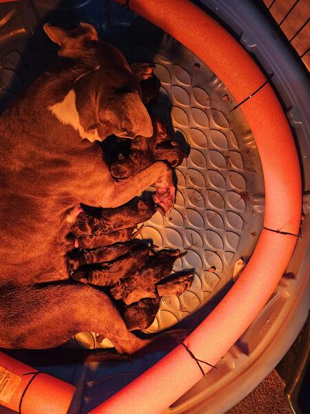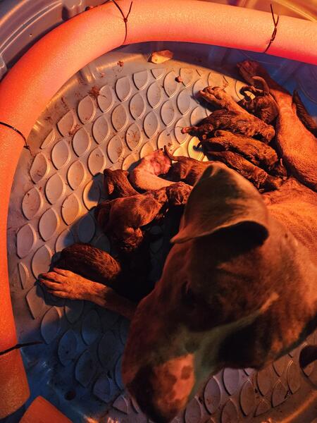 message lssnlsn6one about this ad 1st generation mother is a blue brindle pitbull father is a (heavy influenced neo influenced) cane corso he has beautiful black brindle pattern there are 10 pups 5 males 5 females all the pups are black few have some some white markings there is a fee which Id be happy to discuss in person or on the phone mother and father are on premises (call or text) 845 820 5955 |
