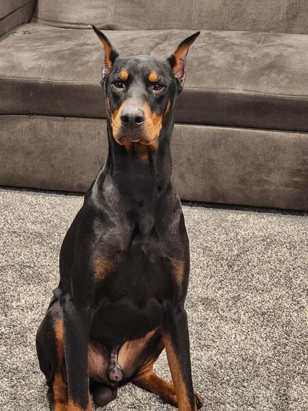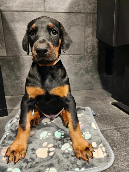 message musky268 about this ad Doberman Pinscher puppies ready to go December 9th. Just in time for Christmas. Tails docked, dew claws removed, and first round of shots. We have 2 black males $1000 and 1 red male left $1500. We also have 1 black female that is all natural. We decided with the vet that it may cause her to much stress to dock her tail, being she was the runt. She is now getting big and doing great. Any questions or for more pictures call 724-456-1160. |