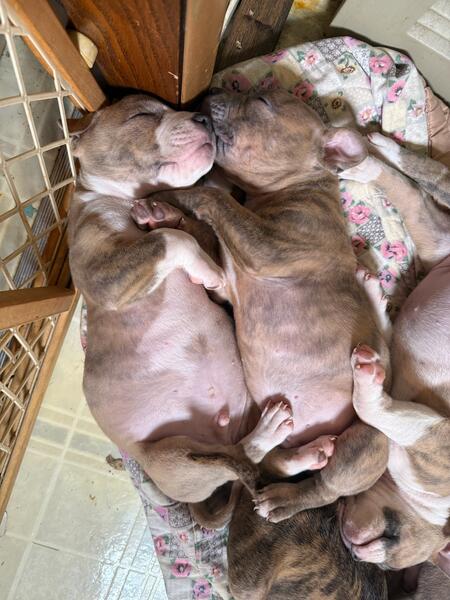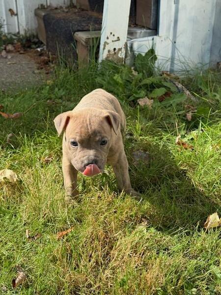 message lc about this ad Olde English Bulldogge x American Pitbull Puppies We have 6 beautiful puppies looking for their forever homes 5 males and 1 female. They are 6 weeks old, healthy, and full of love! Details: Vaccinated & dewormed Kid-friendly and socialized Strong, playful, and affectionate personalities These pups are the perfect mix of Olde English Bulldogge and American Pitbull, giving them the best of both breeds loyal, smart, and loving companions. Text or call for more info or pictures: 810-429-6309 Dont miss out on the chance to welcome one of these sweet pups into your family! |