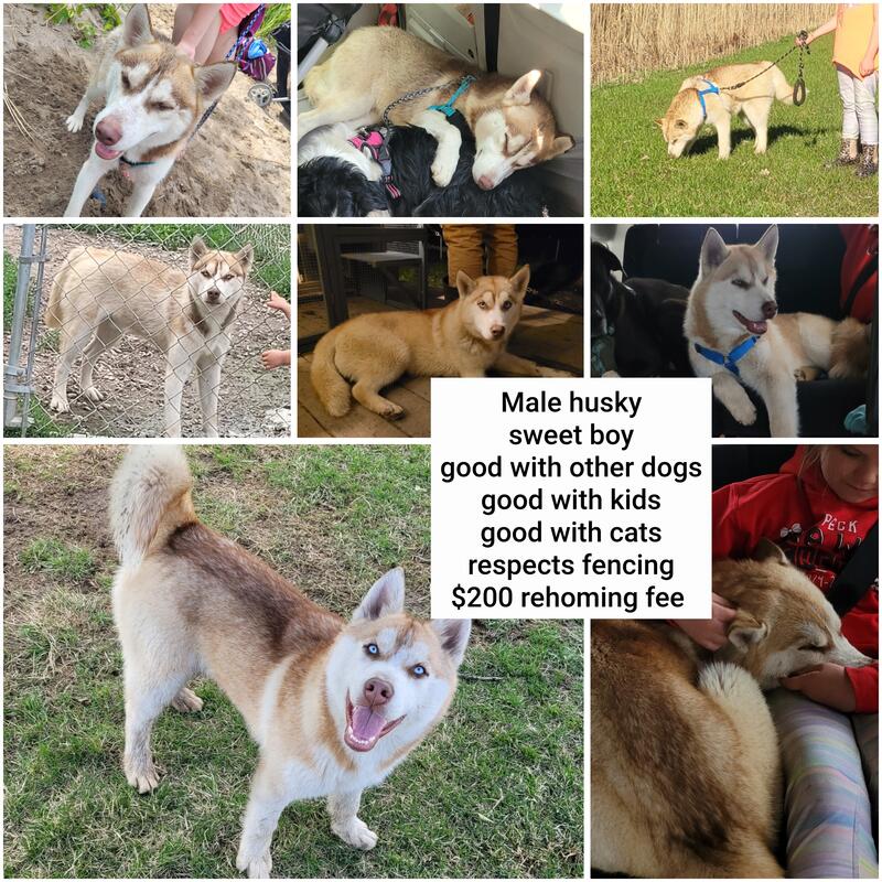 message loveforlgds about this ad REHOMING SEPERATE* red and white male husky Gray black and white female husky For more info586 please text945 thanks1178 Asking 200 but willing to negotiate to good home! |
