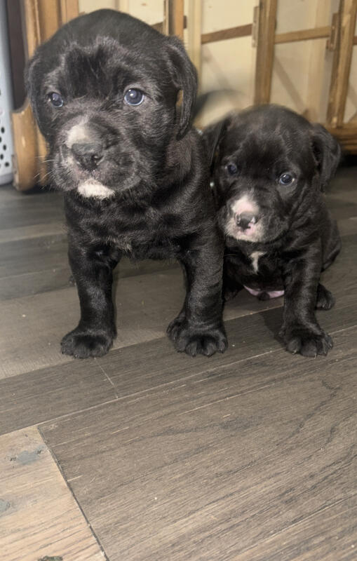 8 week old English bulldog/ giant schnoodle (giant schnauzer/ standard poodle) mix puppies two males available