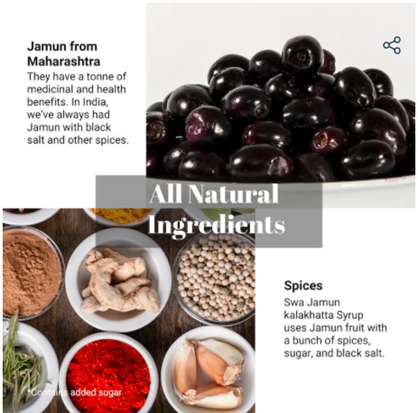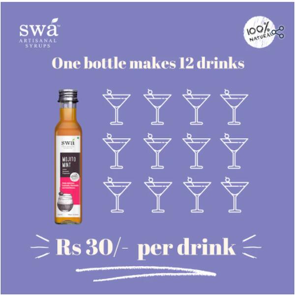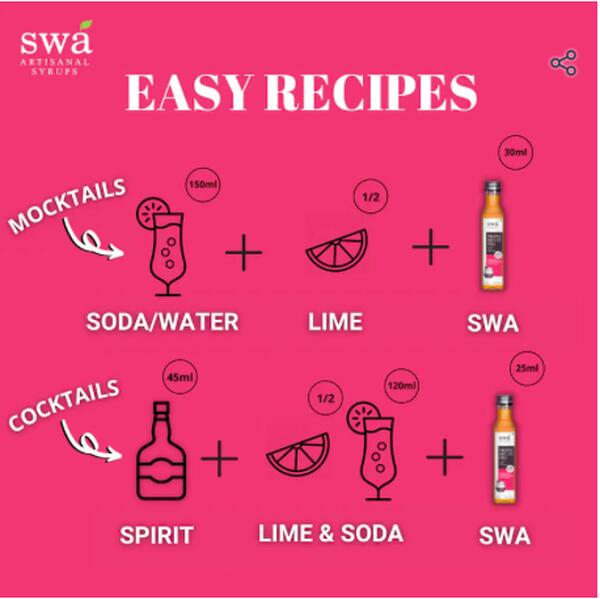 message drinkswa about this ad SWA Jamun Kala Khatta Syrup takes you down the memory lane with the traditional nostalgic Kala Khatta flavour. Made with 100% natural ingredients, 1 bottle can make 12 drinks. Origin: We source our Jamun, the black-berries of India from in and around North India - Maharashtra and Uttar Pradesh to be exact. They have a tonne of medicinal and health benefits. In India, weve always had Jamun with black salt and other spices. The color that Jamun fruit brings to the drink is what steals the show though. Ingredients: Jamun fruit with a bunch of spices, sugar & black salt. Recipe: You can add one part Swa Jamun Kala Khatta to six parts of water and ice to whip up a simple yet delicious Jamun mocktail. You can do a classic Swa Jamun Kala Khatta & Tonic with some vodka, tonic, lime juice, ice and syrup! Add a dash of this Swa Jamun Kala Khatta to your tea to spice it up! Make Mojitos, Margaritas, Lemonades, Martinis & so much more! Only with Swa Artisanal Syrups! message drinkswa about this ad |