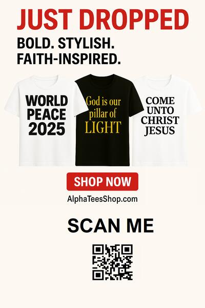 message dscrp215 about this ad Make a statement that speaks to your faith and fashion. From World Peace 2025 to Come Unto Christ Jesus and God Is Our Pillar of Light, our latest arrivals bring light, hope, and confidence wherever you go. Soft, premium cotton for all-day comfort Powerful messages that inspire conversation Designed for believers who lead with purpose Be the message. Wear the mission. Shop the New Faith Collection Today! Shop Now at httpsAlphaTeesShop.com |