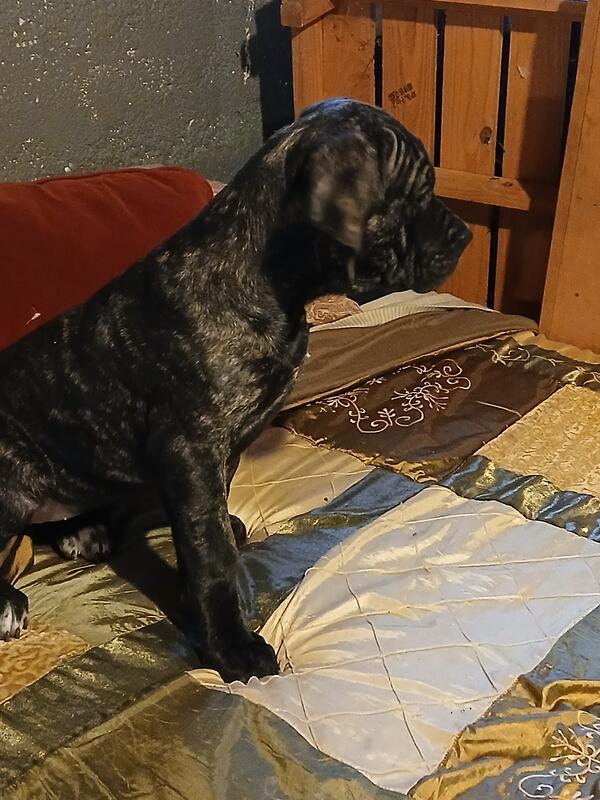 message sherlock247 about this ad Beautiful Brindle Female 2nd Generation Daniff Puppy. Born 9-21-25. She will be extremely large. Dewormed and 1st vaccinations. Located near Terre Haute, Indiana. Text 812-243-5836 for more pics and information. |
